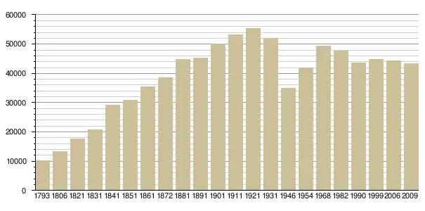 Динаміка населення (base Cassini de l'EHESS pour les nombres retenus jusque 1962[3], base Insee à partir de 1968 (population sans doubles comptes puis population municipale à partir de 2006)[4] · [5] ):
