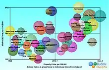 Бульбашкові діаграми можна вважати різновидом точкової діаграми, на якій точки даних замінено бульбашками. Як пояснюється в документації до Microsoft Office, «Ви можете використовувати бульбашкову діаграму замість точкової діаграми, якщо ваші дані мають три ряди даних, кожне з яких містить набір значень. Розміри бульбашок визначаються значеннями у третьому ряді даних.».[1]