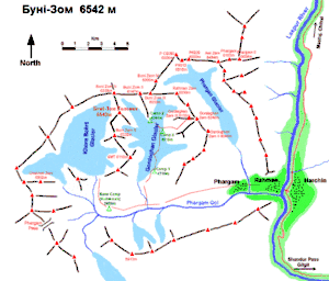 Масив Буні-Зом має багато інших піків, 12 з яких висотою понад 6000 м, так і не були підкорені[6].