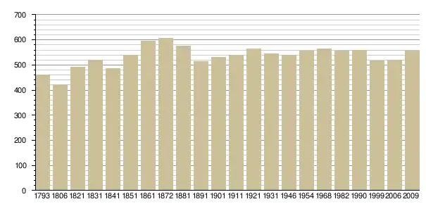 Динаміка населення (base Cassini de l'EHESS pour les nombres retenus jusque 1962[3], base Insee à partir de 1968 (population sans doubles comptes puis population municipale à partir de 2006)[4] · [5] ):