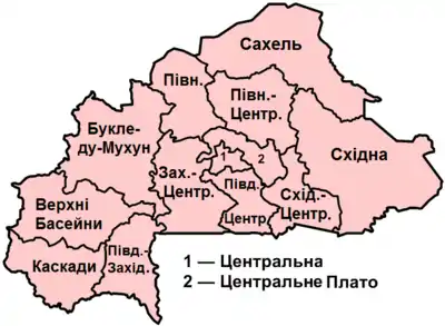 | 9 | Верхні Басейни | Hauts-Bassins | Бобо-Діуласо | 3 | 26 606 | 1 410 284 | 53,01 |