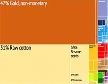 Держава експортує: бавовна, арахіс, золото. Основні покупці: Китай (40 %); Сінгапур (14 %); Гана (5,5 %). У 2006 році вартість експорту склала 543,5 млн доларів США[2].