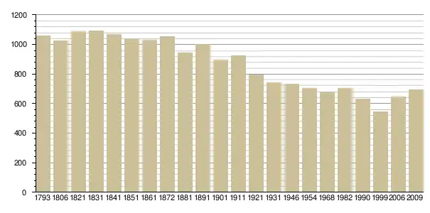 Динаміка населення (base Cassini de l'EHESS pour les nombres retenus jusque 1962[3], base Insee à partir de 1968 (population sans doubles comptes puis population municipale à partir de 2006)[4] · [5] ):