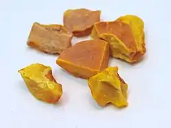 - бурштин неспілий (кранцит — викопна смола складу C10H16O);