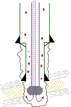 Початкові діаметри труб, залежно від глибини буріння, можуть бути такими: до 20–25 м — діаметр 111—131 мм, а глибшому — 151 мм, інколи — до 189 мм.