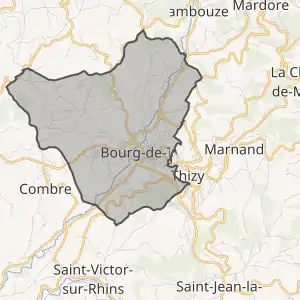Муніципалітет розташований на відстані[2] близько 350 км на південний схід від Парижа, 55 км на північний захід від Ліона.