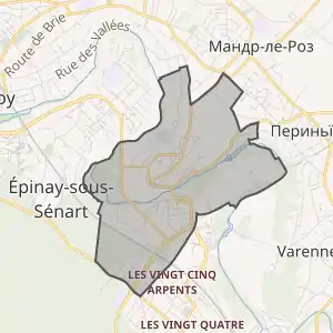 Муніципалітет розташований на відстані[2] близько 23 км на південний схід від Парижа, 11 км на північний схід від Еврі.
