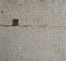 - Threatte, Leslie (1980). The grammar of Attic inscriptions. W. de Gruyter. pp. 54–55. ISBN 3-11-007344-7.