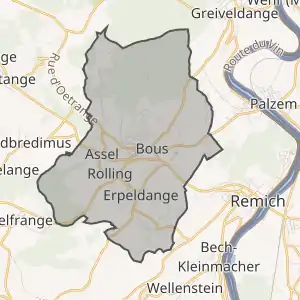 ![]() Комуна Бус (помаранчевий), кантон Реміх (темно-червоний) та округ Гревенмахер (темно-сірий) на карті Люксембургу | |||||||||||||
