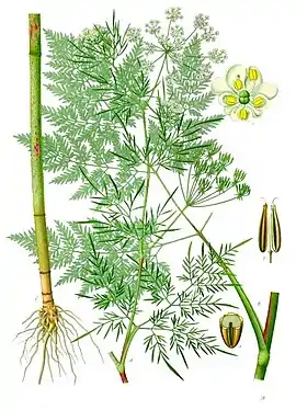 Листки двічі-тричі розсічені. корінь веретеноподібний.