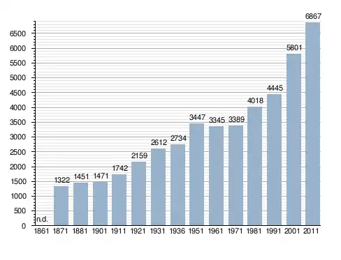 Станом на 31 грудня 2014 року в муніципалітеті офіційно проживало 729 іноземців з 44 країн, серед них 372 громадяни країн Євросоюзу та 9 громадян України.[4]