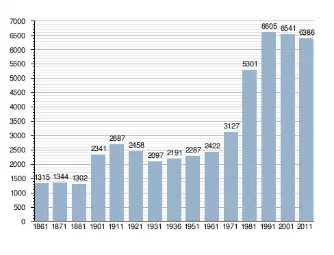 Станом на 31 грудня 2014 року в муніципалітеті офіційно проживало 288 іноземців з 24 країн, серед них 192 громадяни країн Євросоюзу та 6 громадян України.[4]