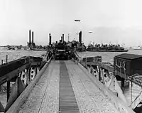 Рух військової техніки по портовим спорудам бухти «Малберрі А». Плацдарм «Омаха»