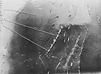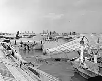 - A wartime aerial view of part of the Mulberry Harbour at Arromanches