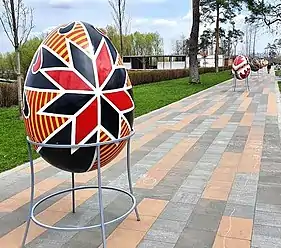 - Великі акрилові писанки в місті Буча вздовж алеї / Big acryl pysanka in Bucha - Figuripark. Figuripark.com - дизайн і виробництво вуличних фігур, скейт - парків та декоративного прикрашення міст України. (Українська). Процитовано 2.05.2021.