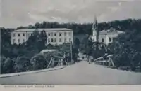 - Стара світлина, зліва — будівля старших класів, 1930 рік