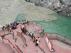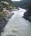 Бхаґіратхі (спереду) перед злиттям з Алакнандою (ліворуч) та утворення Гангу (позаду) біля Девпраяґа (ліворуч)