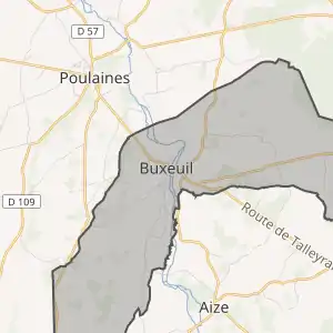 - Розташування муніципалітету Бюксей на мапі Франції та сусідні муніципалітети