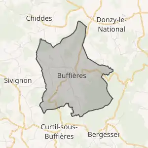- Розташування муніципалітету Бюфф'єр на мапі Франції та сусідні муніципалітети