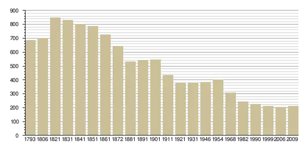 Динаміка населення (base Cassini de l'EHESS pour les nombres retenus jusque 1962[3], base Insee à partir de 1968 (population sans doubles comptes puis population municipale à partir de 2006)[4] · [5] ):