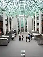 Загальна площа будівлі становить 260 000 м³, корисна площа 64 000 м². На західному фасаді знаходяться вісім плит із символічними написами: