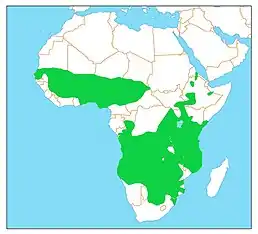 Вид досить поширений в країнах Африки південніше Сахари. Мешкає у саванах, на луках, полях. Уникає тропічних лісів та жарких пустель.