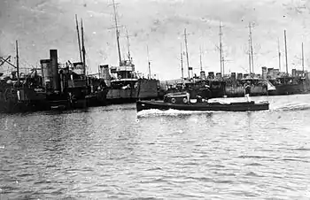 - В Ак-Мечеті: лінійні кораблі «Генерал Алексєєв», «Георгій Побідоносець»; крейсер «Генерал Корнілов», допоміжний крейсер «Алмаз»; підводні човни «Тюлень», «Утка», «Буревісник», АГ-22; канонерські човни «Терець», «Кубанець», «Алтай», «Кавказ», Ельпідіфор-411 і Ельпідіфор-412; ескадрені міноносці «Гнівний», «Пилкий», «Строгий», «Свирепий», «Капітан Сакен», «Жаркий», «Звонкий», брандвахта «Церіго»; посильні судна «Лукулл», «Дніпровець», «Севастополь»; тральщики «Баклан», «Березань», «Іпполай»; тральні катери «Коршун», «Чигирин»; катери «Січ», «Полтава», «Мічман Ковалевський», «Смєлий», «Пушкар», «Тайфун», «Київ» і № 51; сторожові катери СК-1, СК-3, СК-5, СК-6, СК-7, СК-8; криголам «Гайдамак» і великий рятувальний пароплав «Чорномор».