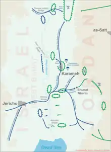 Ізраїльська піхота та танки, що просувалися на схід, аби заблокувати дорогу від Ас-Салт до мосту Алленбі, зіткнулися з йорданською 60-ю танковою бригадою, що мала приєднатися до оборони Караме. У результаті бою йорданські танкісти втратили вісім танків Паттон, не пошкодивши жодного з ізраїльських, відійшли на пагорби, де окопалися і почали обстріл ізраїльтян. Рух ізраїльських військ на схід і на південь від Шуна Німрім був зупинений.[5]