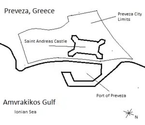 У цій першій сутичці італійці випустили близько ста 76-мм снарядів. 3 есмінці продовжили патрулювання, в той час як «Артільєре» і «Кораццьєре» вирушили до Превези, куди прибули через декілька годин. Уночі офіцер з «Кораццьєре» таємно висадився на берег, щоб розвідати турецькі укріплення перед атакою, яка була запланована на наступний ранок. У порту перебували 2 інші турецькі міноносці («Арпагот» і «Гамід-Абад»). Саме місто захищала стара фортеця «Агіос Андреас» (грец. Κάστρο του Αγίου Αντρέα), в якій було 25 сучасних гармат.