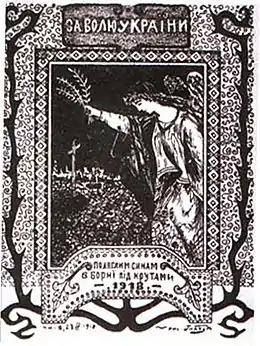 Вчора відбувся похорон студентів і гімназистів, що лицарськи склали свої буйні голови, боронячи Україну від нападу північних варварів. Коло другої годин дня жалібний похід вирушив од вокзала. Прості деревяні блакитні домовини були поставлені по два на площадки візників. В поході брали участь духовенство, студентський хор під орудою Кошиця, військовий оркестр, військові відділи і сила народу.