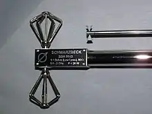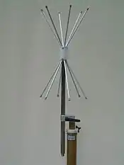 Малі біконічні мікрохвильові антени (верхня: 1-18 ГГц, нижня: 0.5-3 ГГц)