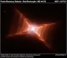 Так чи інакше, але досить тривалий період порівняно спокійного витоку речовини з поверхні червоних гігантів завершується скиданням їх оболонок й оголенням ядра. Така скинута оболонка спостерігається як планетарна туманність (див. рис. 7). Швидкості розширення протопланетарних туманностей становлять десятки км/с, тобто близькі до значення параболічних швидкостей на поверхні червоних гігантів, що є додатковим підтвердженням їхнього утворення скиданням «надлишку маси» червоних гігантів.