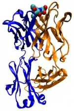 Багато білків, що входять до складу крові, беруть участь в захисній відповіді організму як на пошкодження, так і на атаку патогенів. Прикладами першої групи білків служать фібриногени і тромбіни[38], що беруть участь в згортанні крові, а антитіла (імуноглобуліни), нейтралізують бактерії, віруси або чужорідні білки. Антитіла, що входять до складу імунної системи та відповідають за набутий імунітет, приєднуються до чужорідних для даного організму речовин, антигенів, і таким чином нейтралізують їх, направляючи до місць знищення. Антитіла можуть секретуватися в міжклітинний простір або закріплюватися в мембранах спеціалізованих В-лімфоцитів, які називаються плазмоцитами[39].