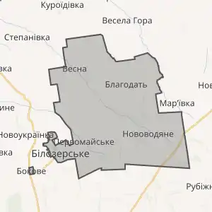 До складу громади увійшли м. Білозерське, села Благодать, Веселе Поле, Весна, Нововодяне, Первомайське та селище Бокове[3].