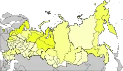 Доля білорусів у населенні регіонів Росії.