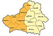 - Барановицька область (з 4 грудня 1939 по 8 січня 1954, увійшла в Берестейську, Гродненську, Мінську і Молодечненську)