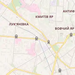 | Трамваї | Т 14, 15 (по Дегтярівській вулиці) |