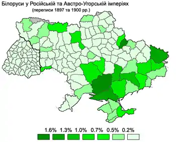 За даними Всеукраїнського перепису населення 2001 року білоруську мову назвали рідною 56 249 осіб, в тому числі 19,8% етнічних білорусів. Найбільша кількість білоруськомовних проживає у Дніпропетровській області (6 239 осіб), Криму (5 204) та Донецькій області (4 842). Найвища частка у населенні осіб з рідною білоруською мовою зафіксована у Криму (0,26%), Чернігівській (0,19%) та Дніпропетровській (0,18%) областях.