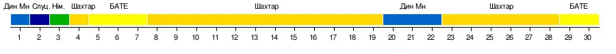 | Динамо Мінськ | 0-1 | 1-0 | –––– | 2-1 | 4-2 | 1-0 | 1-0 | 1-0 | 1-0 | 1-0 | 1-0 | 2-2 | 0-0 | 2-0 | 1-0 | 1-3 |