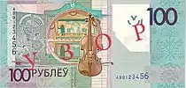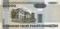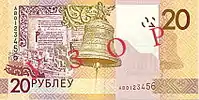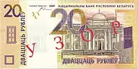 20 рублів | 150 x 69 мм | Оливково-жовтий | Національний банк Білорусі | Національний банк Білорусі | |||
