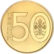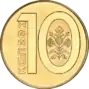10 копійок | 17,7 | 1,8 | 2,8 | сталь із латунним покриттям | ребристий | Номінал і національний орнамент, що символізує родючість і життєву силу | |