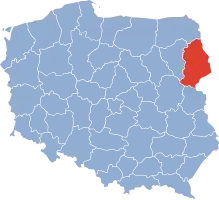 - Районна адміністрація в Білостоці для гмін: Хорощ, Чарна-Білостоцька, Добжинево-Дуже, Грудек, Юхновець-Косьцельни, Лапи, Міхалово, Посвентне, Супрасль, Сураж, Туроснь-Косьцельна, Тикоцин, Васильків, Заблудів та міста Білосток