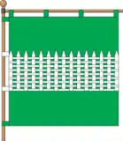 Квадратне полотнище розділене горизонтально на три рівновеликі смуги — зелену, переплетену у вигляді тина білу, і зелену.