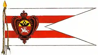 - Прапор Білоруського особливого батальйону в складі армії Литви (1920). Після приєднання Литви до СРСР прапор вилучено НКВС.[22]