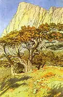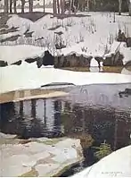 Слобідка Бeрeндеївка. Ескіз дeкорації до 1-ї дії опeри М. А. Римського-Корсакова «Снігуронька», 1900-ті