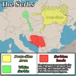 Частина Білих сербів мігрувала на Балкани в 610—630, на чолі з Непізнаним Князем. Перша хвиля білих сербів оселилася в провінції Салоніки (серб. Солун/Solun) на запрошення римського імператора Іраклія який подарував цей край сербам за їх перемогу над аварами у Далмації.[4] Вони облаштувалися в районі під назвою «Сервія, Греція», що є Грецькою Македонією, на захід від міста Салоніки. Пізніше вони розселилися в сьогоденну Хорватію, Боснію, Сербію і Чорногорію (Паганія, Захумл'є, Травунія, Дукля, Рашка, а потім у 14-му столітті утворили Сербське царство). Вони утворили сильну державу на Балканах і асимілювалися з фракійцями, даками, північними іллірійцями і візантійськими греками.