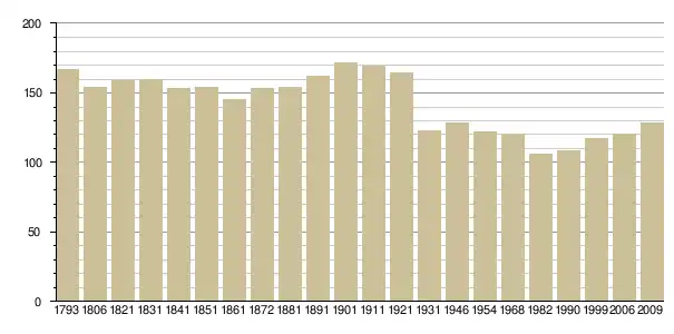 Динаміка населення (base Cassini de l'EHESS pour les nombres retenus jusque 1962[3], base Insee à partir de 1968 (population sans doubles comptes puis population municipale à partir de 2006)[4] · [5] ):