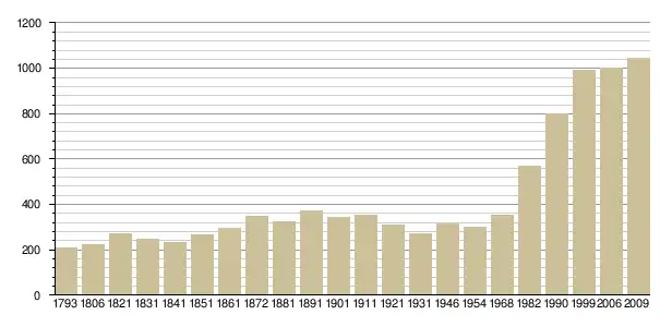 Динаміка населення (INSEE [3] і Ldh/EHESS/Cassini [4]. ):