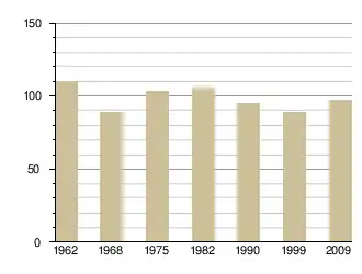 - Insee : historique des populations par commune depuis le recensement de 1962, наведено за французькою вікіпедією