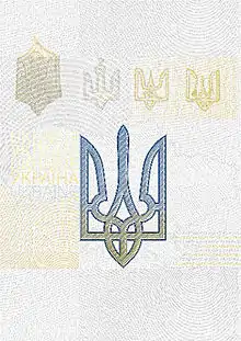 Окрім малого Державного Герба України, виконаного лінійним растром; гільйошного зображення у вигляді хвилястих ліній і слова «УКРАЇНА UKRAINE», на цих сторінках надруковано зображення: